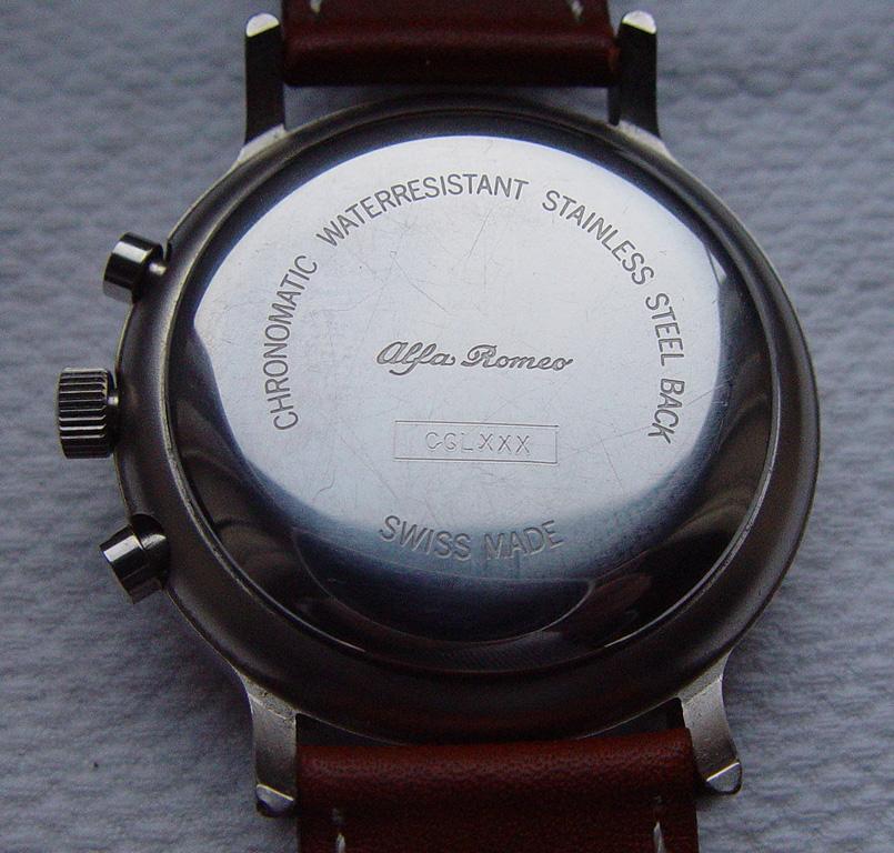 A tema Alfa però continuo a preferire questo a calibro Lemania 5100 usato tra gli altri da Omega per lo Speedmaster Mark 4.5 di cui ho parlato qualche pagina prima, che era a listino accessori Alfa Romeo ad inizio anni 90 anche con quadrante nero.